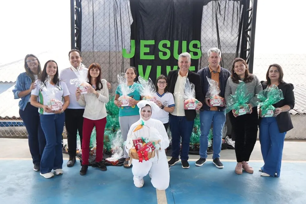 "A Páscoa é um momento de reflexão e renovação, e é com grande alegria que proporcionamos este gesto de carinho aos nossos alunos. Que a união e a esperança desta data inspirem a todos a construir um futuro melhor para Wenceslau Braz." - Luiz Carlos Vidal (Polaco), Prefeito.
