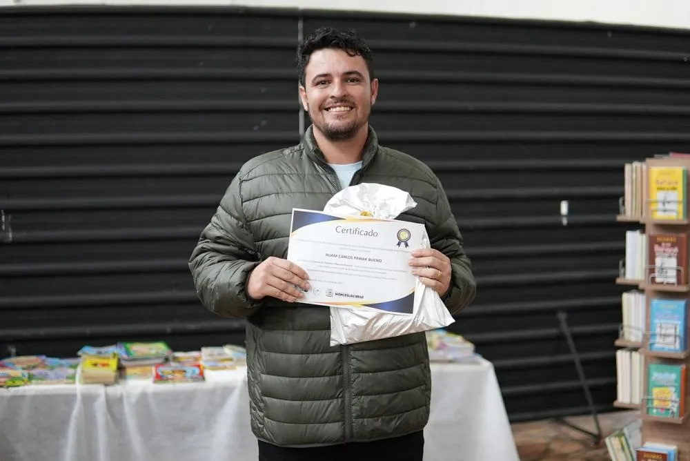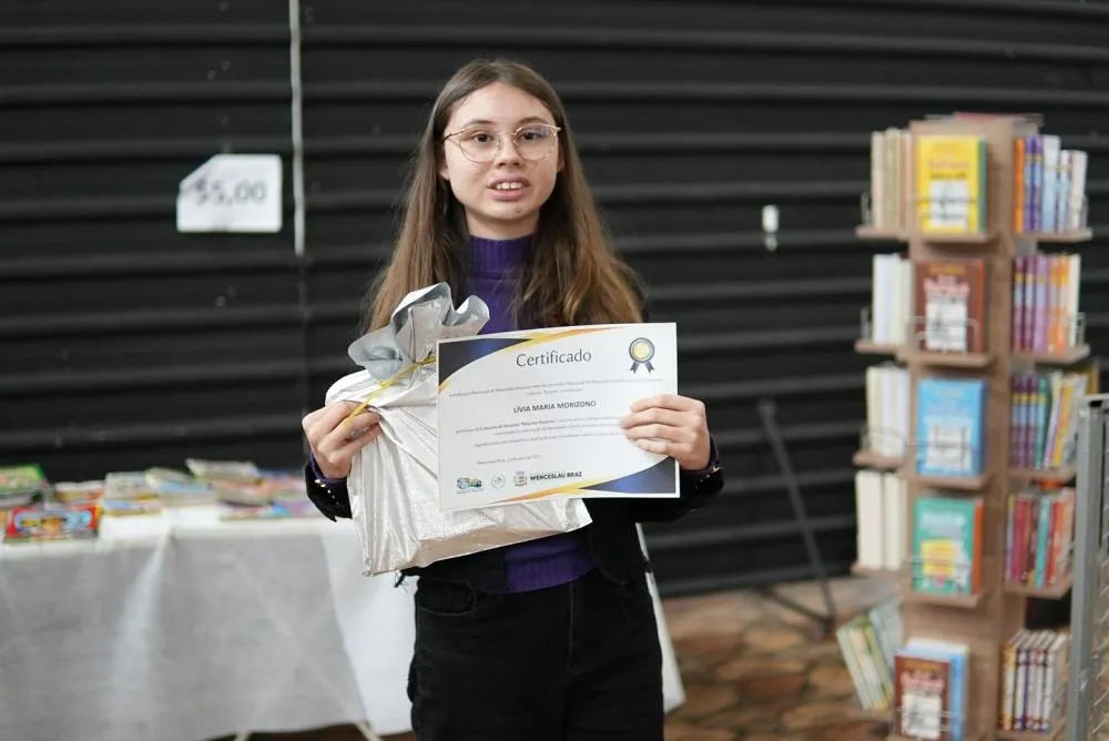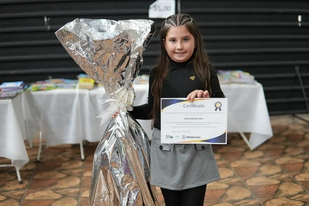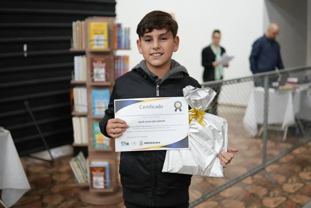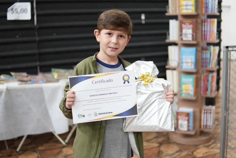 A cerimônia de premiação, realizada durante a Feira do Livro, homenageou os 10 finalistas com fotos especiais, reconhecendo o esforço e a dedicação de cada um. O ponto alto da noite foi a apresentação do boneco oficial do Wentoslau, criado com base no desenho vencedor do concurso. O mascote, agora símbolo da cidade, representa com orgulho a cultura e os valores de Wenceslau Braz.