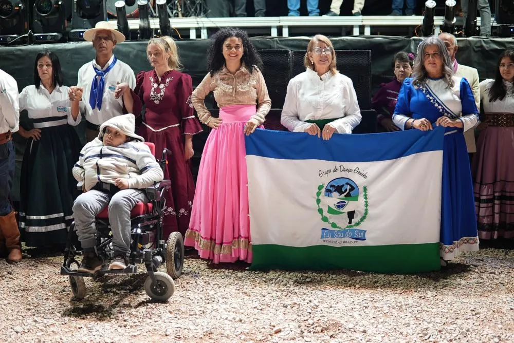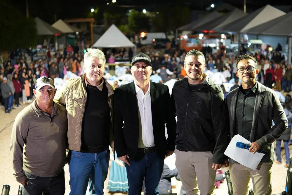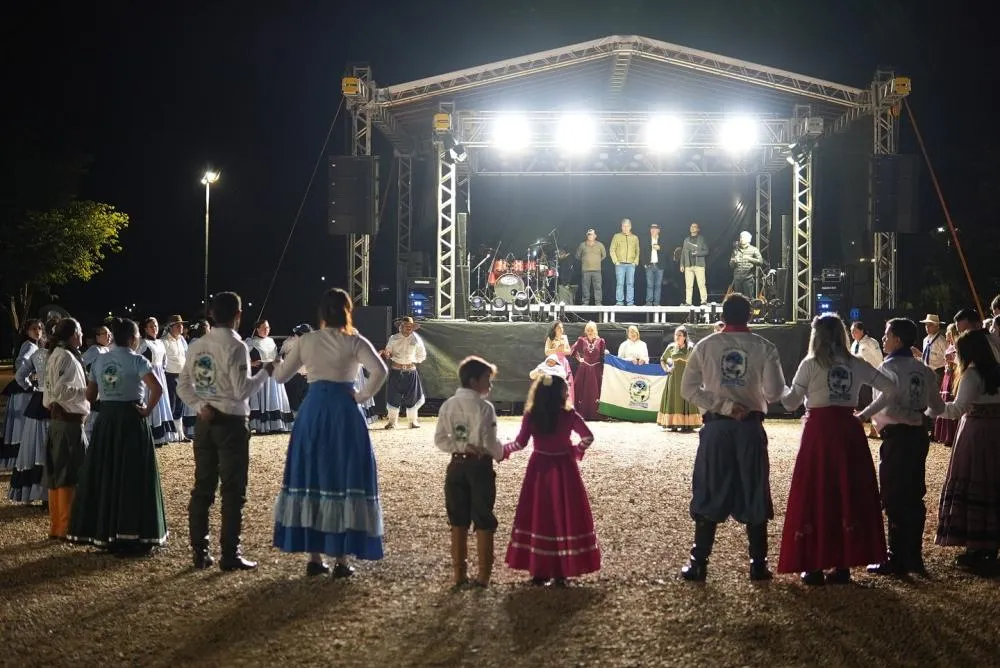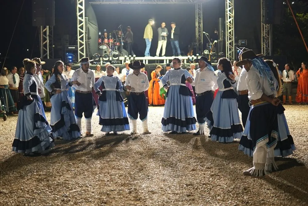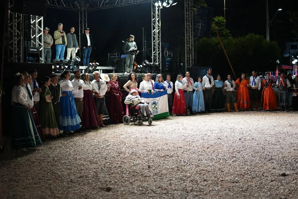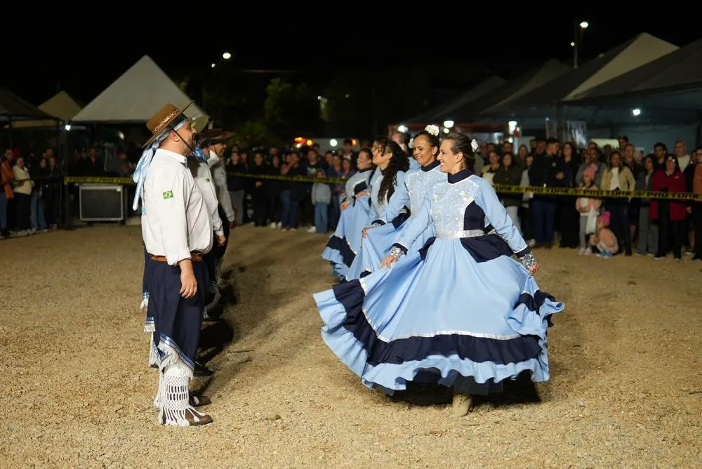 A noite festiva teve início com uma apresentação deslumbrante do Grupo Sou do Sul, que trouxe ao palco a beleza e a riqueza da dança tradicionalista. Com coreografias impecáveis e trajes típicos, o grupo envolveu o público em uma atmosfera de celebração da cultura local. Em seguida, o talentoso cantor Matheus Xavier subiu ao palco, contagiando a todos com um show vibrante e cheio de sucessos. A energia contagiante do artista e sua interação com o público criaram uma atmosfera de festa e descontração, tornando a noite ainda mais especial.