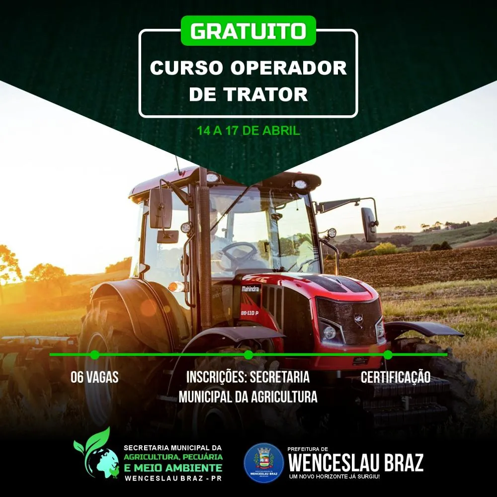 Prefeitura de Wenceslau Braz promove curso gratuito para operadores de trator
